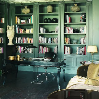 He designed the recessed library bookcases, seen here, which are finished in Marston & Langinger's 'Roman Bronze'. The French Art Deco desk is from Magnus Antiques, and the 1930s Italian swivel chair was discovered at De Parma.